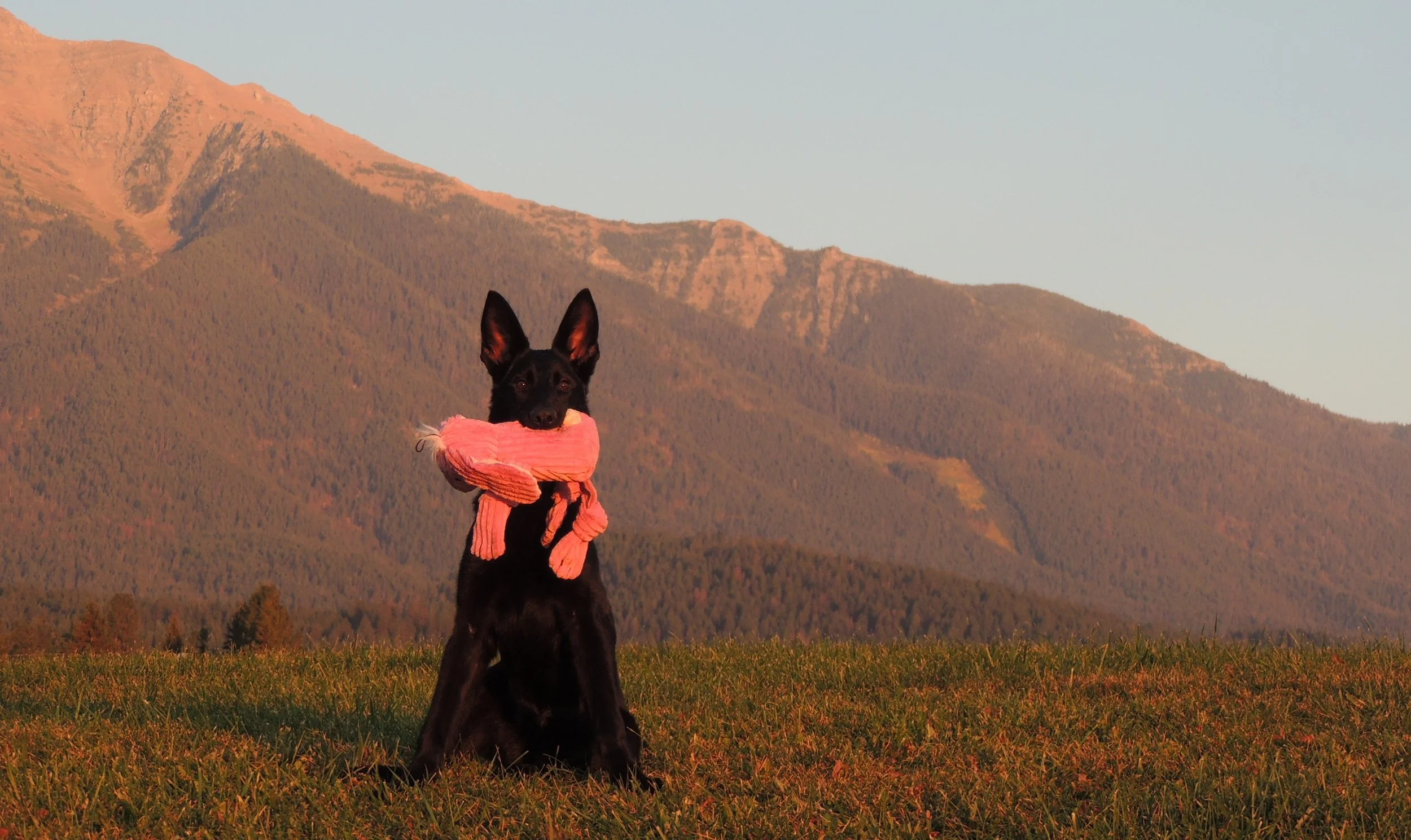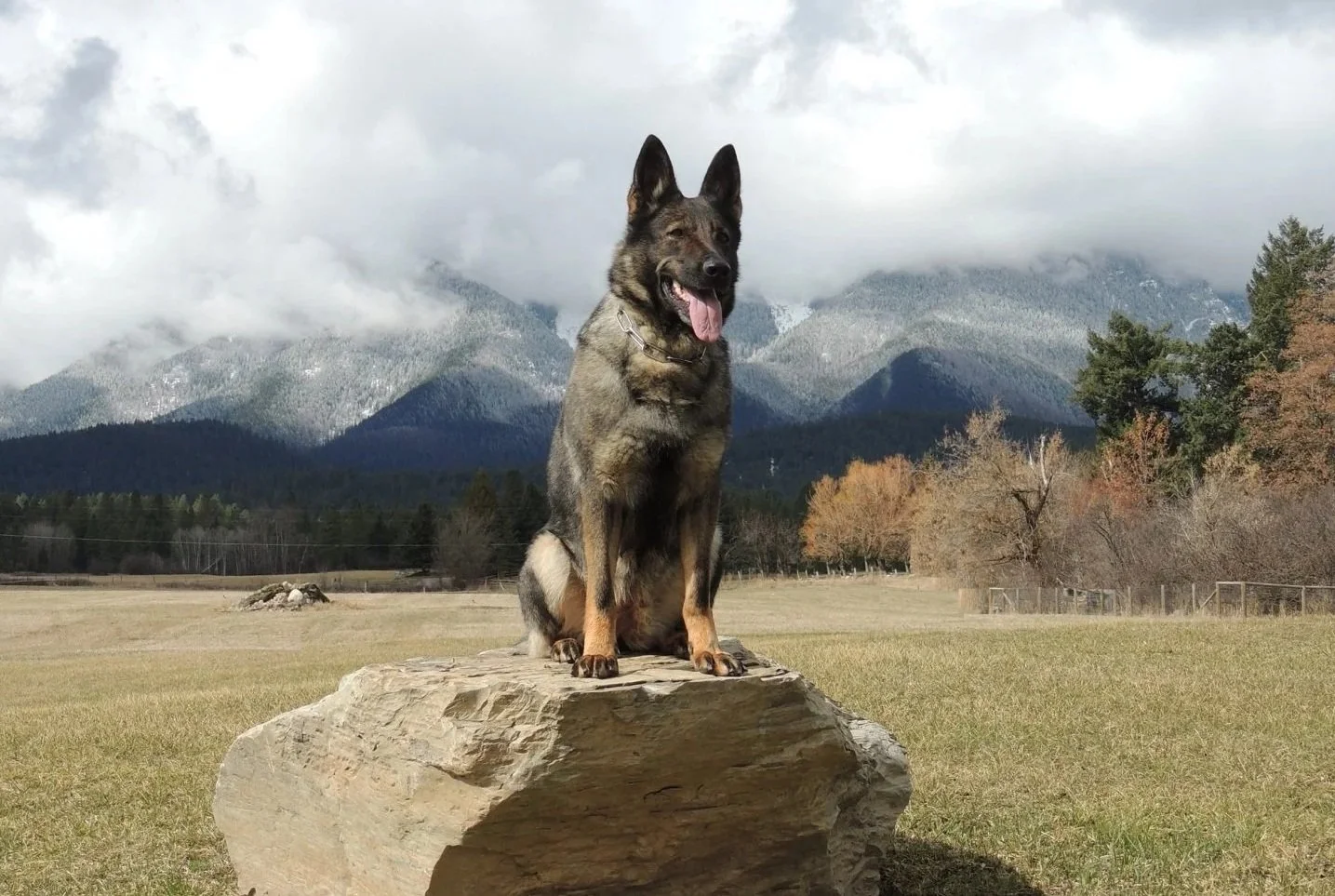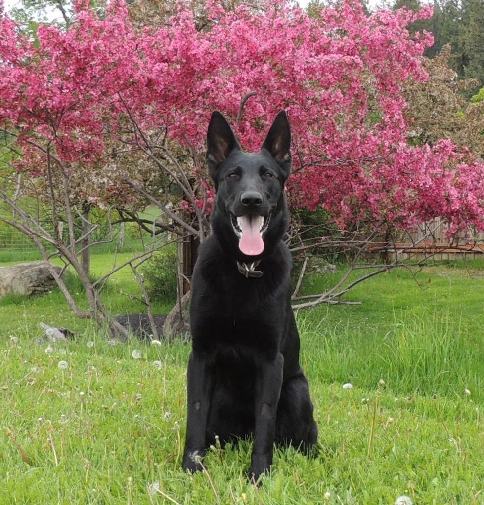 Large, strong female with dark pigment, strong working drives, playful, fun dog, very watchful of her territory and its ongoings! Healthy dog. -