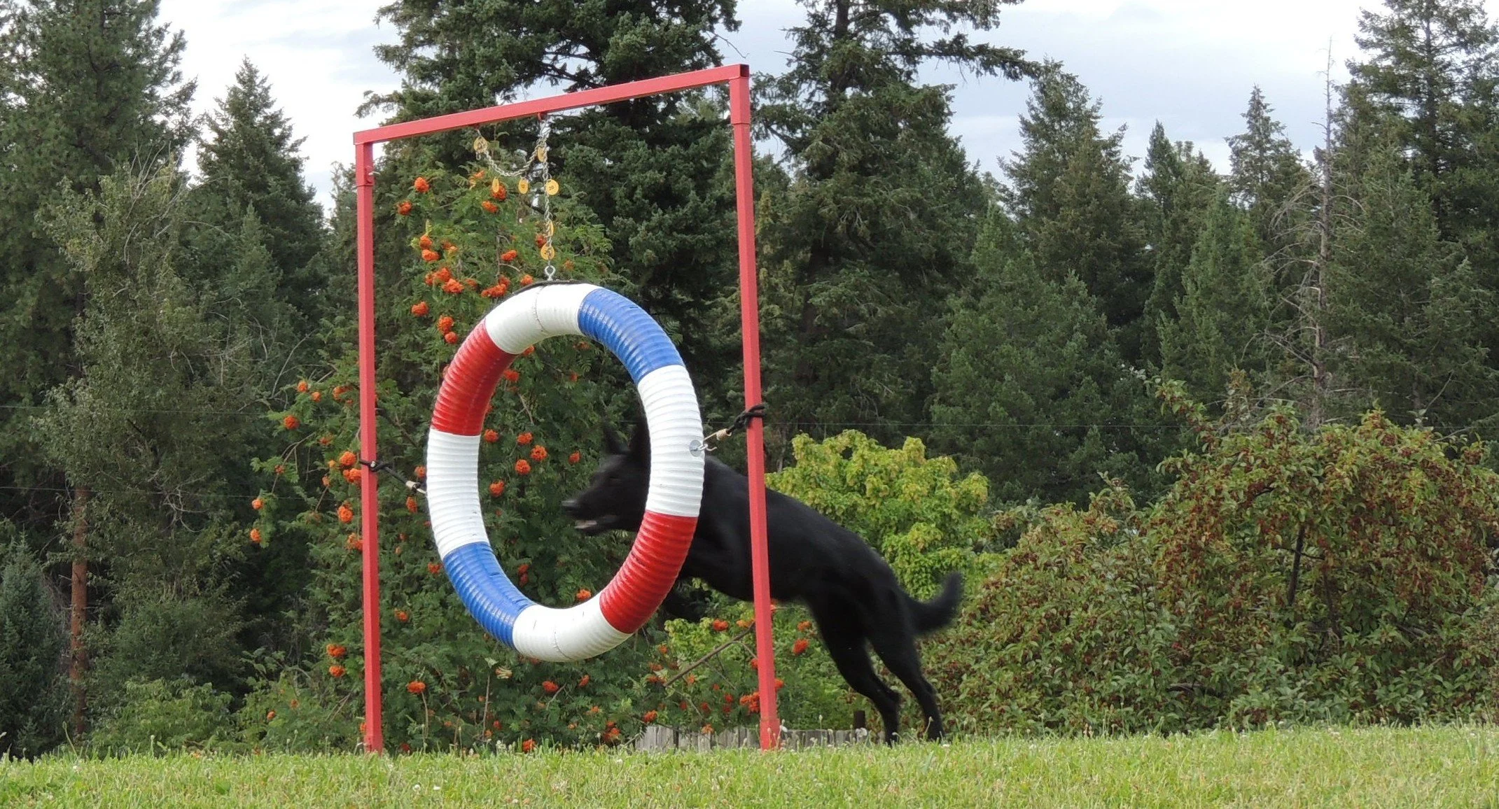 Practicing agility jumps.