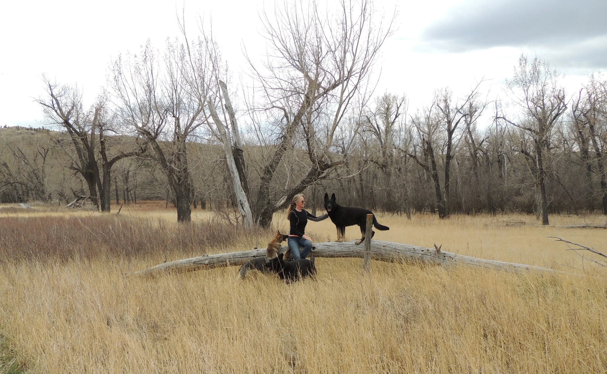 A memorably camping trip with a group of our breeding dogs., Xurk on log.
