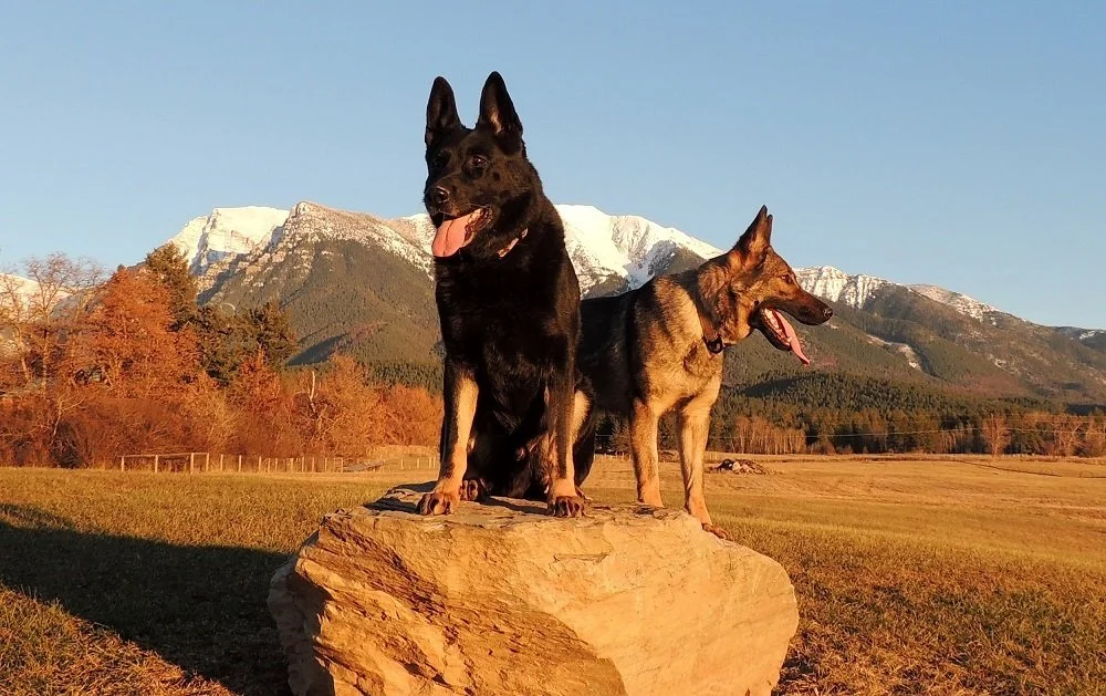 Xurk and one of our females, enjoying a summer evening in the creek in our back yard. Our dogs are very lucky dogs.