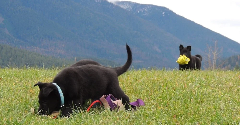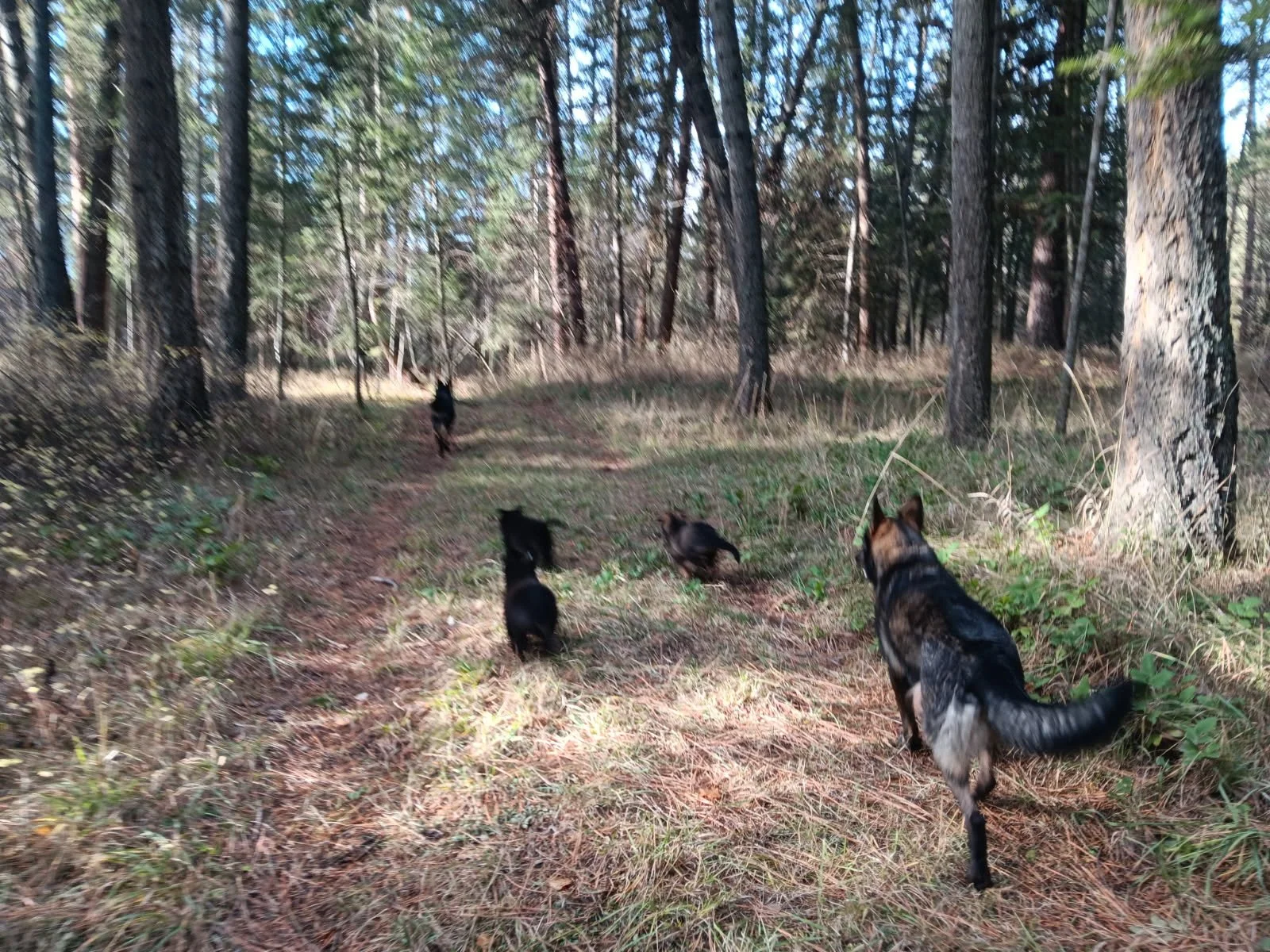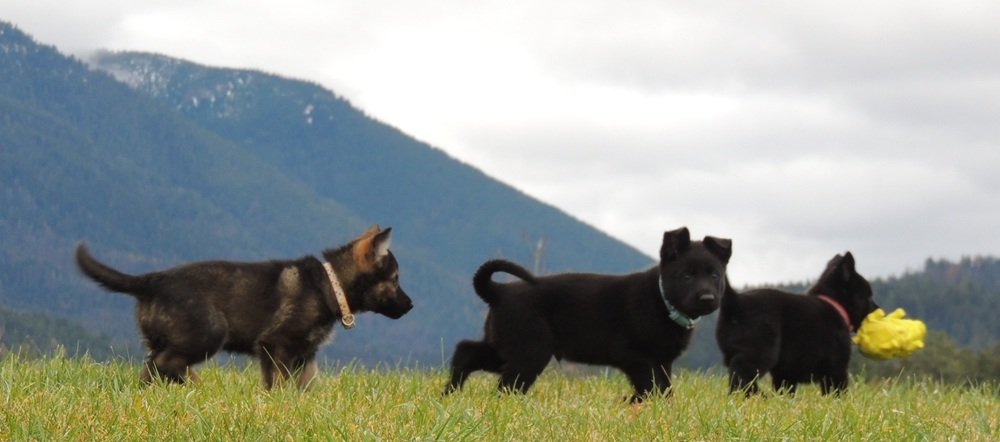 Pups and Ulka out with their half sibling Jack (a 16 month old son of Xurk). Jack is a gentleman around young pups.